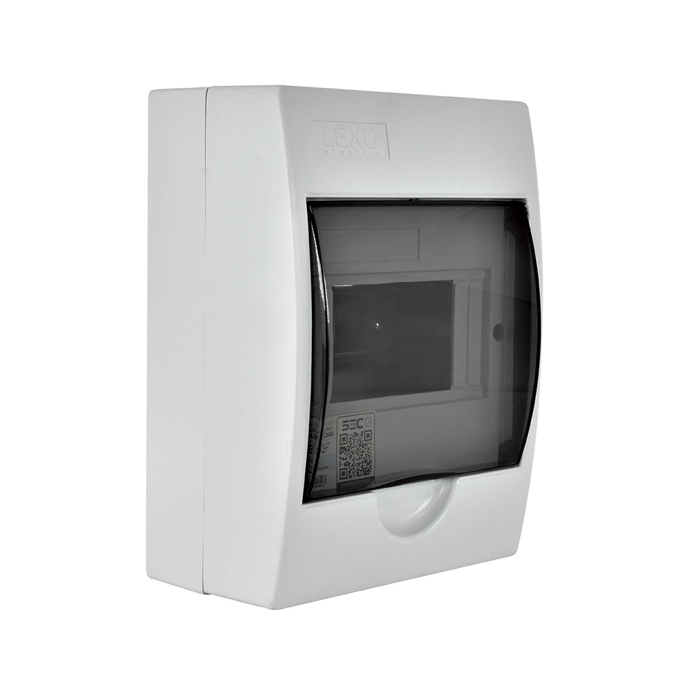 Tablero Sobrepuesto 6 Polos Tapa Color Humo Libre de Halógeno IP41. Despacho a todo Chile.